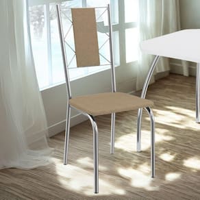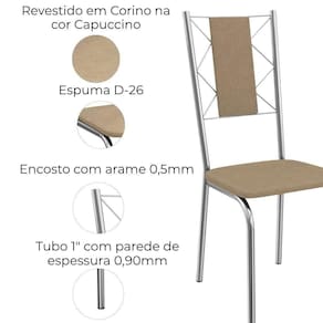 Conjunto 2 cadeiras 2C076, ideais para salas de jantar ou recepções. Estrutura em MDP (15 mm), corpo/ pés tubular em alumínio (Tubo 1 com parede de espessura 0,90mm), encosto com detalhes em arame 0,5mm. Estofadas com espuma D26 e revestido em Corino (material sintético que imita couro), além de sapatas para proteção ao piso. Este produto será entregue em 01 volume.
