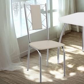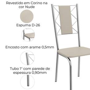 Conjunto 2 cadeiras 2C076, ideais para salas de jantar ou recepções. Estrutura em MDP (15 mm), corpo/ pés tubular em alumínio (Tubo 1 com parede de espessura 0,90mm), encosto com detalhes em arame 0,5mm. Estofadas com espuma D26 e revestido em Corino (material sintético que imita couro), além de sapatas para proteção ao piso. Este produto será entregue em 01 volume.