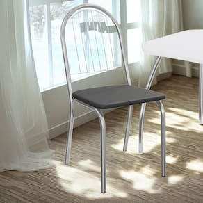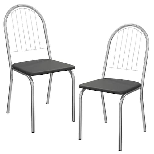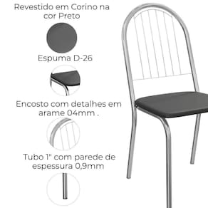 Conjunto 2 cadeiras 2C077, ideais para salas de jantar ou recepções. Estrutura em MDP (15 mm), corpo/ pés tubular em alumínio (Tubo 1 com parede de espessura 0,9mm), encosto com detalhes em arame 0,4mm. Estofadas com espuma D26 e revestido em Corino (material sintético que imita couro), além de sapatas para proteção ao piso. Este produto será entregue em 01 volume.