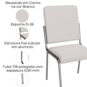 Conjunto 2 cadeiras 2C091, ideais para salas de jantar ou recepções. Estrutura em MDP (15 mm), base/ pés tubular em alumínio (tubo 7/8 polegada com espessura 0,90 mm). Estofadas com espuma D26 e revestido em Corino (material sintético que imita couro) garantindo conforto, durabilidade e fácil limpeza. Possui sapatas para proteção ao piso. Este produto será entregue em 01 volume.