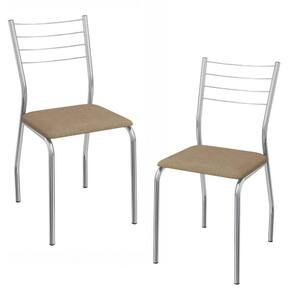 Conjunto 2 cadeiras 2C140, ideais para salas de jantar ou recepções. Estrutura em MDP (15 mm), corpo/ pés tubular em alumínio (Tubo 7/8 com parede de espessura 0,90mm), encosto com detalhes em arame 0,5mm. Estofadas com espuma D26 e revestido em Corino (material sintético que imita couro), além de sapatas para proteção ao piso. Este produto será entregue em 01 volume.