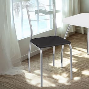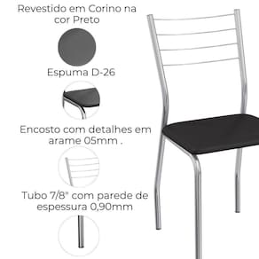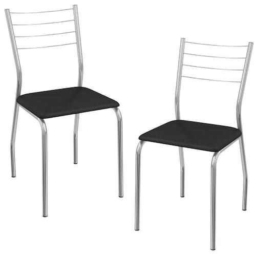 Conjunto 2 cadeiras 2C140, ideais para salas de jantar ou recepções. Estrutura em MDP (15 mm), corpo/ pés tubular em alumínio (Tubo 7/8 com parede de espessura 0,90mm), encosto com detalhes em arame 0,5mm. Estofadas com espuma D26 e revestido em Corino (material sintético que imita couro), além de sapatas para proteção ao piso. Este produto será entregue em 01 volume.