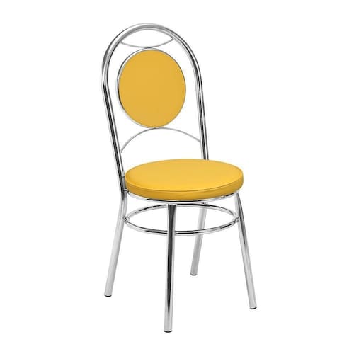 Kit 2 Cadeiras Cromadas Cc10 De Metal Treparoni Amarelo Ja imaginou uma cadeira linda e confortavel que agrega beleza a decoracao e ainda faz com que as suas refeicoes sejam mais prazerosas? O Kit com 2 Cadeiras de Cozinha com acabamento cromado e uma excelente opcao para deixar a sua sala de jantar ou cozinha mais aconchegante e com um visual elegante! Deve ser feita com pano macio e seco ou levemente umedecido com agua e sabao neutro. Nao devem ser utilizados abrasivos como palha de aco e objetos cortantes. Caracteristicas: Tipo de Banqueta: Fixa Material da Estrutura: Metal Espessura do Material da Estrutura: 19,05 mm Material do Enchimento do Assento: Espuma D15 Material da Estrutura do Assento: Aglomerado Espessura do Material da Estrutura do Assento:15 mm Material do Revestimento do Assento: Material Sintetico Material da Estrutura do Encosto: Aglomerado Espessura do Material da Estrutura do Encosto: 15 mm Material do Enchimento do Encosto: Espuma D15 Material do Revestimento do Encosto: Material Sintetico Material dos Pes: Metal Tipo de Pe: Fixo Numeros de Pes: 4 Altura do Assento Ate o Chao 50 cm Peso Recomendado: 120 Kg por Pessoa Kit Ferragem Completo: Nao Manual de Montagem Detalhado: Nao