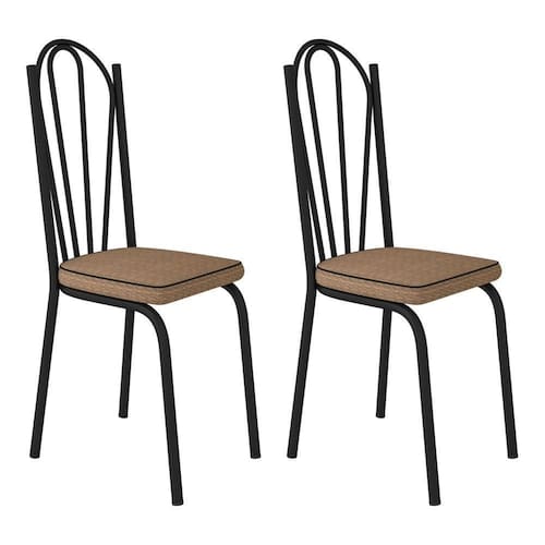 Kit 2 Cadeiras De Cozinha Alabama Estampado Rattan Bege Pés De Ferro Preto - Pallazio