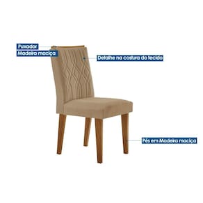 Kit 2 Cadeiras de Cozinha Alegra 2 Un Madeira Capuccino/Linho Bege Turim - Rufato - Blush