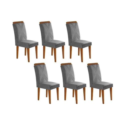 Cadeira Sala de Jantar Amsterdã Kit 6 Un Capuccino/Suede Grafite - Rufato
