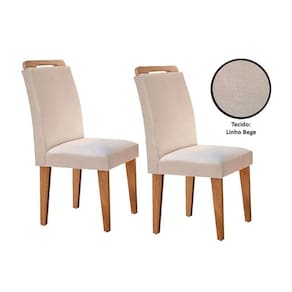 Cadeira Sala de Jantar Athenas Kit 2 Un Madeira Capuccino/Linho Bege Turim - Rufato