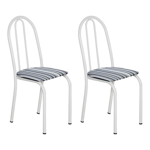 Kit 2 Cadeiras de Cozinha Califórnia Estampado Preto Listrado Pés de Ferro Branco - Pallazio