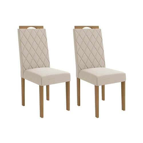 Cadeira Sala de Jantar Camélia Kit 2 Un Carvalho/Linho Bege Caqui - Kappesberg