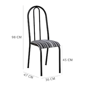 O estofamento estampado não apenas confere personalidade à cadeira, mas também proporciona conforto durante as refeições. Os pés de ferro garantem estabilidade e durabilidade, tornando-a uma escolha ideal para o ambiente da cozinha.