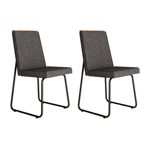 Cadeira Sala de Jantar Lira 1752 Aço Kit 2 Uni Preto/Linho Grafite/Courano Preto - Carraro