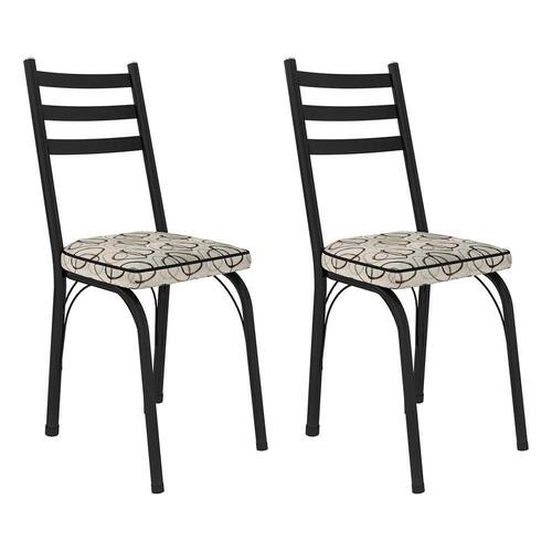 Kit 2 Cadeiras de Cozinha Luisiana Estampado Cedro Pés de Ferro Preto - Pallazio - Cinza