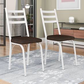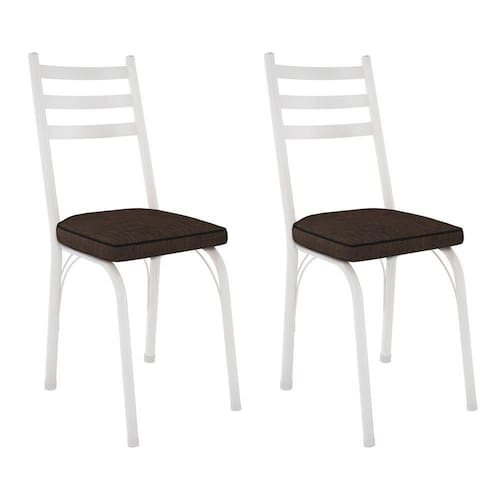 Kit 2 Cadeiras de Cozinha Luisiana Estampado Imbuia Pés de Ferro Branco - Pallazio - Marrom