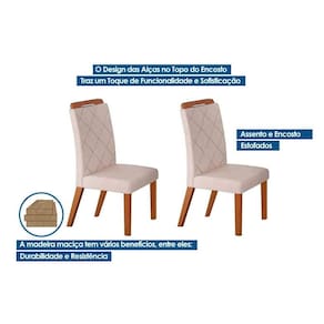 Cadeira Sala de Jantar Melissa Kit 2 Un Madeira Capuccino/Suede Creme - Rufato