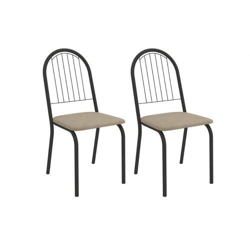 Kit 2 Cadeiras de Cozinha Noruega 2C077PRF Aço 2 Un Preto/Linho Bege Fendi - Kappesberg - Blush