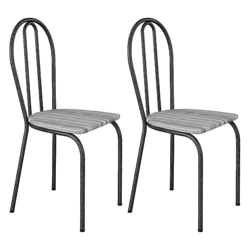 Kit 2 Cadeiras De Cozinha Texas Estampado Linho Pés De Ferro Cromo Preto - Pallazio