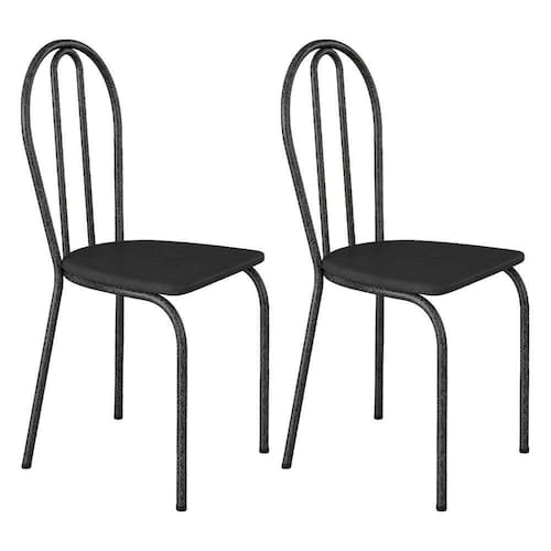 Kit 2 Cadeiras De Cozinha Texas Liso Preto Pés De Ferro Cromo Preto - Pallazio