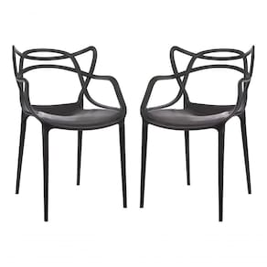 Kit 2 Cadeiras De Design Allegra Interior E Exterior - Preto Preto A cadeira Allegra, com seu design contemporâneo, combina estética e conforto. Seu encosto curvo e armações entrelaçadas oferecem suporte e um toque artístico. É perfeita para qualquer espaço e se adapta a diferentes estilos decorativos. Ideal para uso interno ou externo. Adequado para interior e exterior. Conta com tampas nas suas pernas para evitar que o piso se risque. Caracteristicas Fabricada em polipropileno com fibra de vidro. Peso: 4kg Profundidade: 50 cm Altura: 80 cm Altura do chão ao apoio de braços: 66 cm Altura do chão ao assento: 45 cm Suporta: 150Kg NA