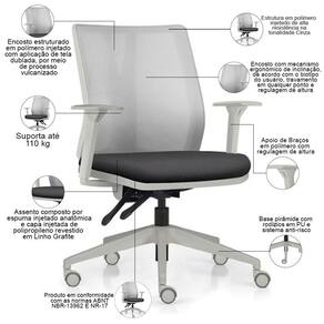 Color: CinzaGrafite | ColorFamily: Cinza | ColorSimple: Cinza | ColorSupplier: CinzaGrafite | Com apoio de braços: Sim | Com aro para pés: Não | Com rodas: Sim | Cor: CinzaGrafite | Formato de venda: Kit 2 unidades | Materiais do aro para pés: na | Material: Polímero injetado, espuma injetada, tela dublada vulcanizada, rodízios em PU, revestimento em Linho | Material do estofamento: Espuma Injetada | MaterialFamily: Polímero | Model: Flow Diretor | Modelo: Flow Diretor | Modelo detalhado: Flow Diretor | OriginCountry: Brasil | OriginState: PR | ProductContents: 02 Cadeiras de Escritório | ProductHeight: 81 cm | ProductInstructions: Produto para uso em ambiente interno, nao devendo ficar exposto ao sol, calor e umidade excessivos. | ProductLength: 71 cm | ProductWarranty: 90 dias após o recebimento do produto | ProductWeight: 13 kg | ProductWidth: 71 cm | Requer montagem: Sim | SizeDescription: Altura: 81 cm x Largura: 71 cm x Profundidade: 71 cm | SupplierSimpleName: Kit 2 Cadeiras de Escritório Giratória Diretor Flow F02 Base Cinza Linho Grafite - Lyam Decor | Tipo de cadeira de escritório: Diretor Giratória