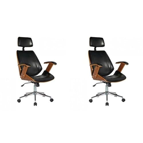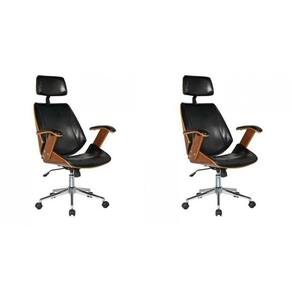 Kit 2 Cadeiras de Escritório Presidente Giratória com Apoia Cabeça Office Lisboa Preto/Marrom