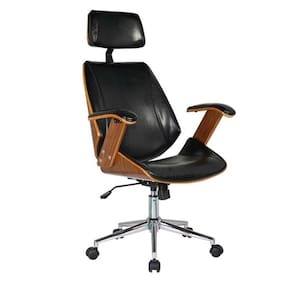 Cadeira office giratória com ajuste de altura e função relax. Estrutura em madeira nogueira compensada, estofada e revestida em Poliuretano. Possui base estrela cromada e rodízios em nylon.