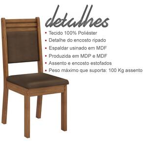 Kit 2 Cadeiras De Jantar 31100, com design moderno e sofisticado, são perfeitas para dar aquele toque especial no seu lar. Estrutura em MDF/MDP de 18 e 25 mm, proporcionando maior durabilidade e resistência à peça, contando com pintura em acabamento U.V (Fosco). Compostas por encosto estofado em espuma D-13, assento em espuma D-20, que trazem a combinação perfeita entre qualidade e conforto, revestimento em tecido Veludo (100% Poliéster), peça ripada acima do encosto, espaldar de MDF usinado com revestimento melamínico, que dá um charme especial ao móvel, além de, bordas em PVC, 4 pés em MDF de 25 mm, e acompanham sapatas deslizadoras, que facilitam o manuseio. Suporta até 100 Kg cada. Complemente sua sala de jantar com muito bom gosto e elegância, tornando seus momentos em família ainda mais aconchegantes. Este móvel chegará na sua casa separado em 02 volumes.