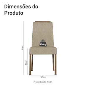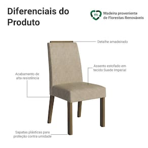 O estofado em tecido Suede Imperial, na tonalidade bege, traz um visual suave, perfeito para ambientes que buscam uma decoração neutra e elegante. A espuma de alta densidade proporciona conforto, tornando cada cadeira uma escolha perfeita para quem valoriza estilo e bem-estar.