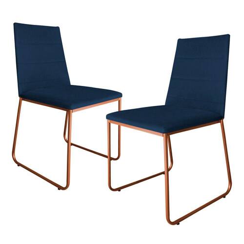 Kit 2 Cadeiras de Jantar Estofada Lille Base Bronze Veludo Azul Marinho - Montanaris Decor