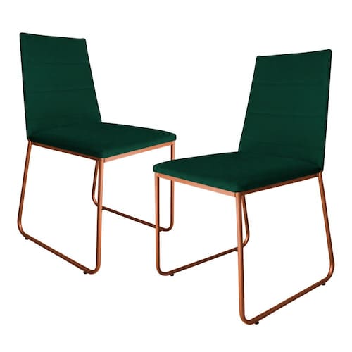 Kit 2 Cadeiras de Jantar Estofada Lille Base Bronze Veludo Verde chegou essa incrível novidade para você, que deseja inovar e decorar o seu espaço com muito Estilo. A Cadeira Lille possui uma matéria-prima de ótima qualidade, garantindo conforto e durabilidade do produto. Possui variações de cores tanto na base e no assento, oferecendo várias opções de escolha para sua decoração.