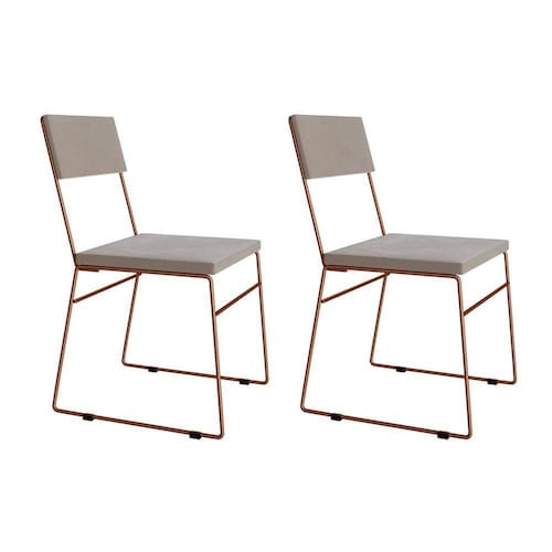 IMAGENS MERAMENTE ILUSTRATIVAS REALIZADO EDIÇÃO, PODENDO HAVER UMA PEQUENA VARIAÇÃO DE COR DEPENDENDO DE CADA TELA OU MONITOR.Kit 2 Cadeiras De Jantar Estofada MÃlaga Base Cobre Veludo Bege