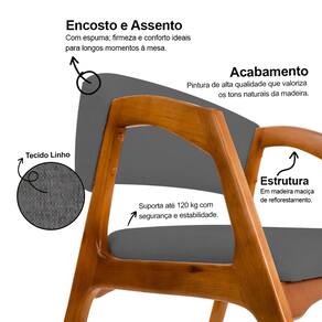 Características Tipo: Cadeira de Jantar Modelo: Gabriela Cor da Estrutura: Cerejeira Cor do Assento e Encosto: Cinza Grafite Tecido do Assento e Encosto: Linho