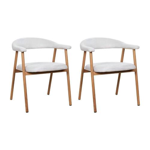 AS IMAGENS SÃO MERAMENTE ILUSTRATIVAS E PODEM SOFRER VARIAÇÕES DE COR E PEQUENOS DETALHES DE ACORDO COM O SEU MONITOR, ILUMINAÇÃO DO AMBIENTE E ATÉ MESMO A SUA PERCEPÇÃO 2 Cadeiras de Jantar Luana Estrutura AÃo Carbono Laminado Natural com Estofado Linho Cru