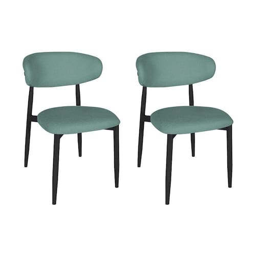 AS IMAGENS SÃO MERAMENTE ILUSTRATIVAS E PODEM SOFRER VARIAÇÕES DE COR E PEQUENOS DETALHES DE ACORDO COM O SEU MONITOR, ILUMINAÇÃO DO AMBIENTE E ATÉ MESMO A SUA PERCEPÇÃO 2 Cadeiras de Jantar Lucy Estrutura AÃo Carbono Laminado Preto com Estofado Linho Verde