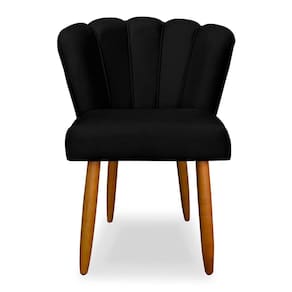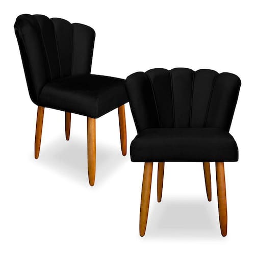 Kit 2 Cadeiras de Jantar Pétala Estofada Pés Palito Veludo Preto - Montanaris Decor