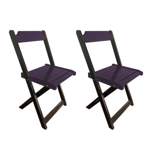 Kit 2 Cadeiras De Madeira Dobrável RoxoFeita em madeira maciça, seu design permite que seja encaixada em qualquer ambiente, trazendo um toque a mais para seu estabelecimento. Por ser dobrável torna-se mais fácil de guardar, manusear e limpar o produto.CaracterísticasTipo: CadeiraModelo: dobrávelBase: Madeira maciçaCor do assento: RoxoQuantidade de cadeiras: 2DIMENSÕES DO PRODUTOAltura: 77cmLargura: 43cmComprimento: 42cm ATENÇÃOEVITE USAR PRODUTOS ABRASIVOS E QUÍMICOS PARA LIMPEZA DO PRODUTO, ACONSELHA-SE O USO DE PANO UMEDECIDO PARA MELHOR CONSERVAÇÃO.AS IMAGENS SÃO MERAMENTE ILUSTRATIVAS E PODEM SOFRER VARIAÇÕES DE COR E PEQUENOS DETALHES DE ACORDO COM O SEU MONITOR, ILUMINAÇÃO DO AMBIENTE E ATÉ MESMO A SUA PERCEPÇÃO VISUAL.Kit 2 Cadeiras de Madeira DobrÃvel Roxo