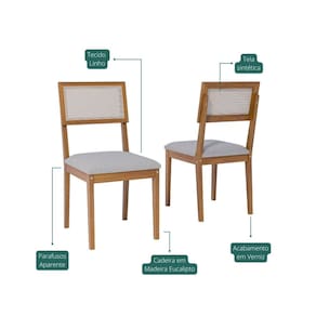 Com estrutura em madeira eucalipto e detalhes bem trabalhados, a peça apresenta encosto em tela sintética, que proporciona ventilação e um visual delicado. O assento possui espuma de alta densidade, oferecendo conforto prolongado e excelente ergonomia. Acabamento da Estrutura: Verniz Almofada do assento: Fixa Altura do assento até o chão: 45 cm Altura dos Pés: 45 cm Ambiente Principal: Sala de Jantar codigo_ean: 7900288205926 Complexidade da Montagem: Baixa: pode ser montado por uma pessoa sozinha Cor: Cinza Cor do Produto: Cinza Dobrável: Não Enchimento do Assento: Espuma D-20 Escala de Brilho: Semi-Brilho Estrutura do Encosto: Madeira Giratória: Não Itens Inclusos: 2 Cadeiras, Kit Ferragens e Manual de Montagem Linha ou Coleção: Encanto Manual de Montagem e Instalação: https://product-hub-prd.madeiramadeira.com.br/308079697/documents/28fa3859-68df-4cb5-9535-3cc9dfecc6573117210503517543356967112.pdf Marca: Cimol Material Principal: Madeira Eucalipto Necessita Montagem: Sim Origem do Produto: Nacional Peso: 10 kg Possui Apoio para Braços: Não Possui Apoio Para os Pés: Não Possui Assento/Encosto Estofados: Possui Somente o Assento Estofado Possui Espaldar: Não Possui Rodízio: Não Quantidade de Itens: 2 Recomendações de Uso, Manutenção e Limpeza: Para manter seu móvel novo por muito mais tempo, evite locais úmidos, mantenha-o distante de líquidos. Para limpá-lo com segurança utilize uma flanela seca sem produtos abrasivos Revestimento do Encosto: Madeira Sistema de Montagem: Parafusos, anel fixador e cantoneiras Tipo de Assento: Fixo Tipo de Encosto: Fixo Tipo de Madeira Maciça: Eucalipto