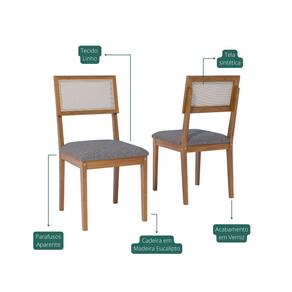 Com estrutura em madeira eucalipto e detalhes bem trabalhados, a peça apresenta encosto em tela sintética, que proporciona ventilação e um visual delicado. O assento possui espuma de alta densidade, oferecendo conforto prolongado e excelente ergonomia. Acabamento da Estrutura: Verniz Almofada do assento: Fixa Altura do assento até o chão: 45 cm Altura dos Pés: 45 cm Altura Máxima dos Pés: 45.0000 Ambiente Principal: Sala de Jantar codigo_ean: 7900288205940 Complexidade da Montagem: Baixa: pode ser montado por uma pessoa sozinha Cor: Grafite Cor do Produto: Grafite Cor dos Pés: Marrom Dobrável: Não Enchimento do Assento: Espuma D-20 Escala de Brilho: Semi-Brilho Estrutura do Encosto: Madeira Giratória: Não Itens Inclusos: 2 Cadeiras, Kit Ferragens e Manual de Montagem Linha ou Coleção: Encanto Manual de Montagem e Instalação: https://product-hub-prd.madeiramadeira.com.br/298091133/documents/046c805d-e8a8-4838-8328-538c49a8484d3117214503517543357250263.pdf Marca: Cimol Material Principal: Madeira Eucalipto Necessita Montagem: Sim Origem do Produto: Nacional Peso: 10 kg Possui Apoio para Braços: Não Possui Apoio Para os Pés: Não Possui Assento/Encosto Estofados: Possui Somente o Assento Estofado Possui Espaldar: Não Possui Rodízio: Não Quantidade de Itens: 2 Recomendações de Uso, Manutenção e Limpeza: Para manter seu móvel novo por muito mais tempo, evite locais úmidos, mantenha-o distante de líquidos. Para limpá-lo com segurança utilize uma flanela seca sem produtos abrasivos Revestimento do Encosto: Madeira Sistema de Montagem: Parafusos, anel fixador e cantoneiras Tipo de Assento: Fixo Tipo de Encosto: Fixo Tipo de Madeira Maciça: Eucalipto