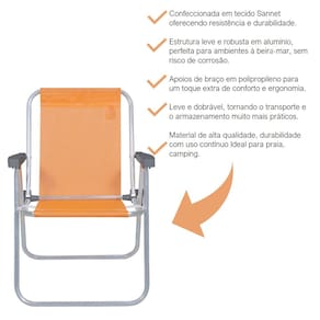 Kit 2 Cadeiras de Praia Alta Alumínio Lazy Sannet Laranja - 023511 Belfix