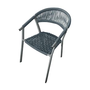 Kit 2 Cadeiras Decorativa Joana Em Corda Náutica E Base Em Alumínio Cinza-cinza - Cor: Cinza