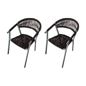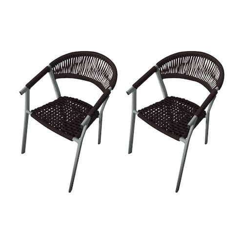 Kit 2 Cadeiras Decorativa Joana em Corda Náutica e Base em Alumínio Cinza/marrom