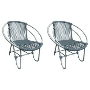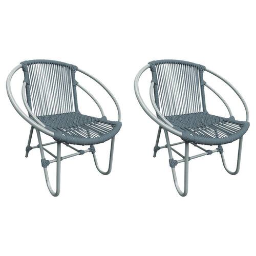 Kit 2 Cadeiras Decorativa Julia em Corda Náutica e Base em Alumínio Cinza/cinza