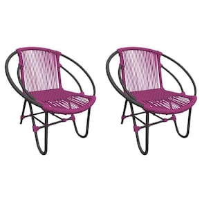 Kit 2 Cadeiras Decorativa Julia Em Corda Náutica E Base Em Alumínio Preta/ Rosa - Cor: Rosa