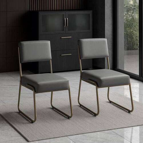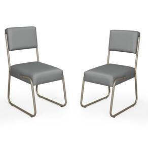 Kit 2 Cadeiras Decorativa Sala De Estar Cozinha Jantar Flórida Couro Sintético Cinza Tubo Champagne