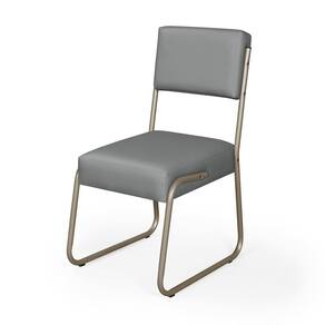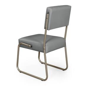 Kit 2 Cadeiras Decorativa Sala De Estar Cozinha Jantar Flórida Couro Sintético Cinza Tubo Champagne Cinza Tubo Champagne