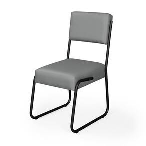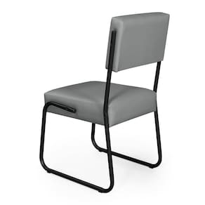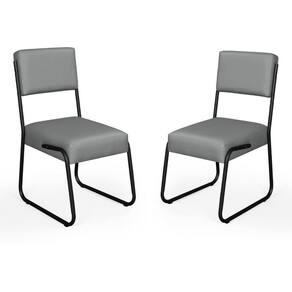 Kit 2 Cadeiras Decorativa Sala De Estar Cozinha Jantar Flórida Couro Sintético Cinza Tubo Preto Cinza Tubo Preto