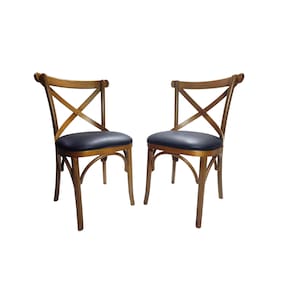 Kit 2 Cadeiras Dubai Madeira Maciça Assento Estofado Couro Sintético Preto Castanho -