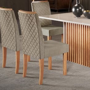 Kit com 2 Cadeiras Elegance Nuova Mel 100% MDF com Espaldar e Veludo Suede Bordado – Sofisticação e Conforto para sua Sala de Jantar