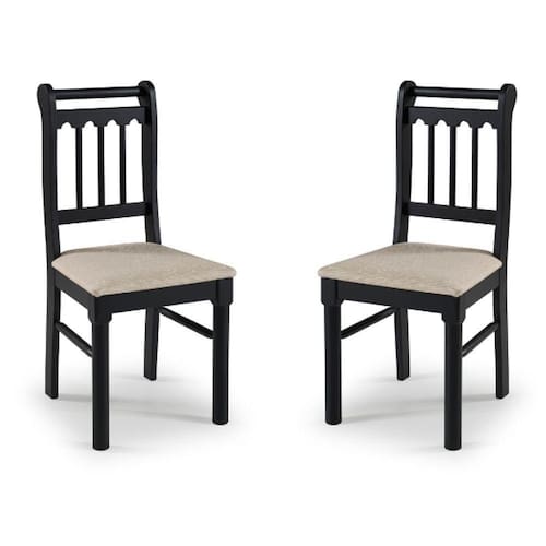 Kit 2 Cadeiras Em Madeira Maciça Mv Outlet Preto Conjunto Com 2 Cadeiras em Madeira Maciça Mv Outlet Preto - Mv Outlet Características das cadeiras - Estrutura: 100% Madeira Maciça Pinus Reflorestada. - Acabamento: Verniz/Laca. - Assento estofado - Peso suportado: até 100 kg - Produto entregue montado