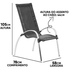 ESPECIFICAÇÕES TÉCNICAS: Cadeira Emily: - Altura total: 80 cm - Altura assento ao chão: 40cm - Largura: 55cm - Profundidade: 63 cm - Suporta até 160 kg