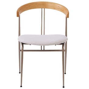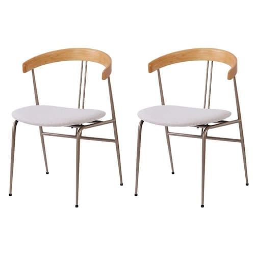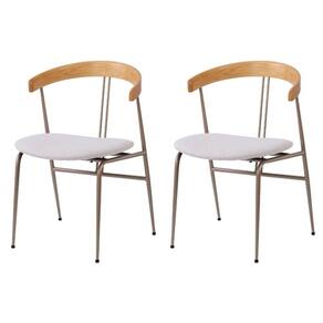 Kit 2 Cadeiras Escandinávia Fratini Encosto Madeira Assento Tecido Nude Estrutura Aço Champangne - Bege